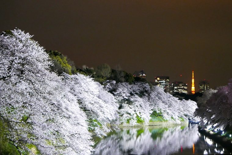 桜にばかり見入ってしまうかもしれませんが、ふと周りを見渡せば、ほかにもいい被写体がたくさん。桜を引き立ててくれる小道具として動員してしまいましょう。例えば建物など人工物をいっしょに入れて撮る、桜が堀や池、水たまりなどに映っていれば、それをいっしょに撮るなど。人とは違った、印象に残る桜フォトになるはずです。