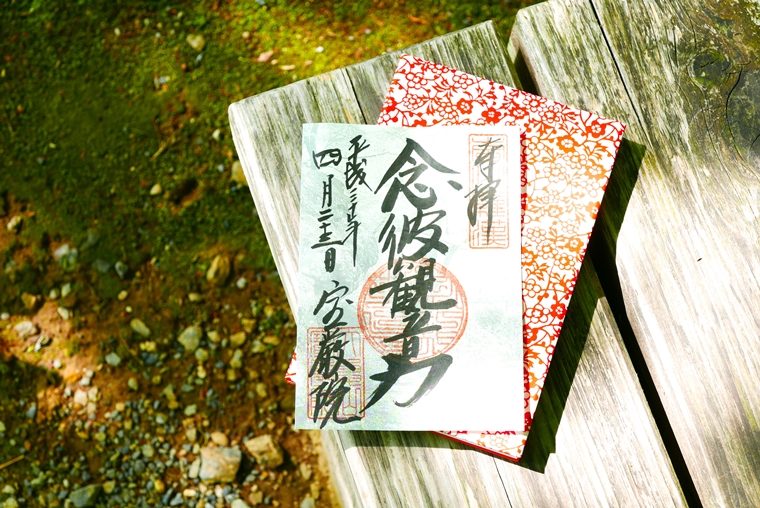寺院や神社で、参拝の証としていただける印状のこと。B6判くらいの和紙などに、社寺やそこの本尊の名前が墨書され、朱色の印が押されます。