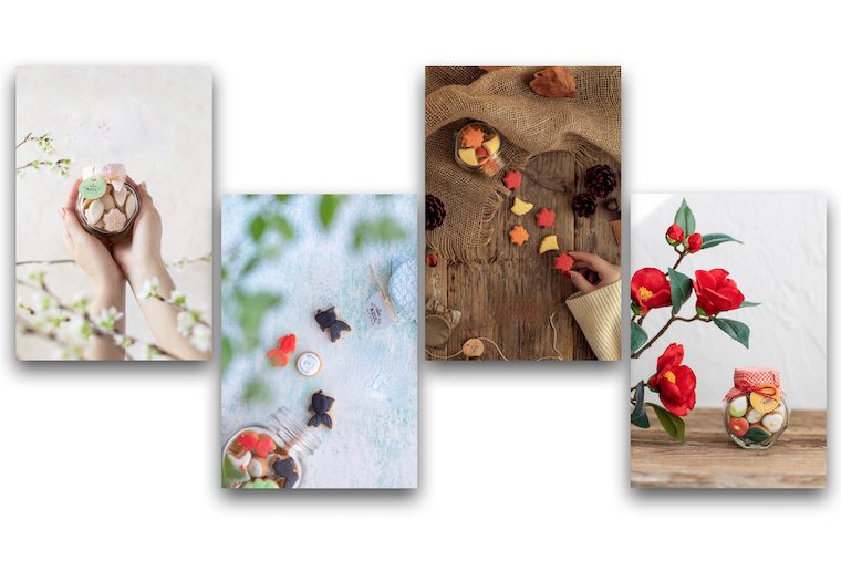 「アイシングクッキーの魅力は、表現できることの幅が広いことです。例えば結婚式用では、新婦さんが実際に着用するウェディングドレスを描くなど、オーダーメイドの作品を作りやすいんです。描くモチーフが自在なことはもちろん、混ぜ合わせることでさまざまな色を作り出せ、使える色の幅が広いのもポイントですね。私は日本の四季が好きなので、うまく色を混ぜれば、そういった自然界にあるモチーフを表現するための微妙な色も作れます。