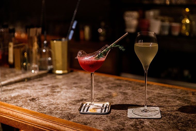 「『フレンチ75』は、フランスの大砲がモチーフになっていて、アルコール度数の高いカクテルです。この「’20」は度数が低いという意味と、開業の2020年をかけました。ベースのノンアルコールジン『ネマ』は、バラがキーボタニカルのひとつになっているので、フローラルな香りを印象的に感じていただけると思います」