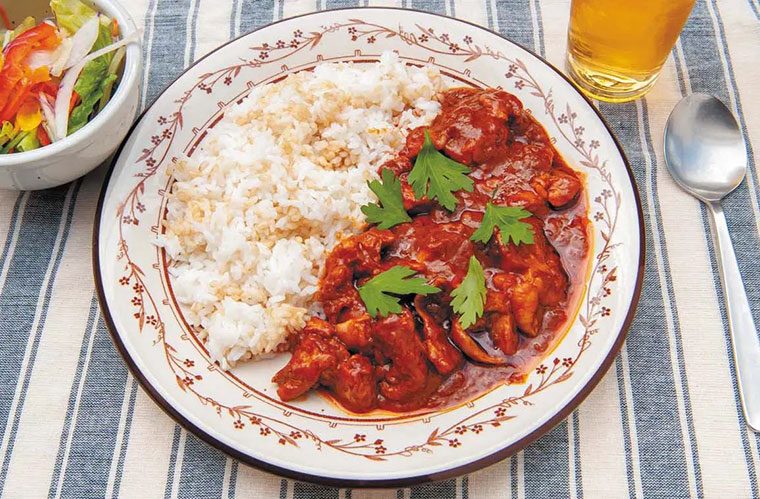 かつおと昆布のだしに鶏肉のキーマを合わせた和風カレー。インドカレーのスパイスに山椒の香りが加わり、華やかな味わいです。