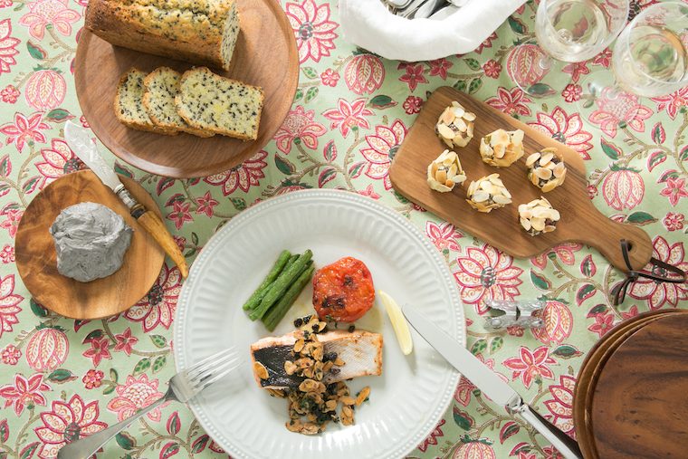 では早速、バターをたっぷり使ったレシピを教えていただきましょう。焼き菓子「黒胡麻のカトルカール」、バターを冷やし固めた「レーズンと発酵バターのアミューズ」、ソースにバターをたっぷり使った「サーモンのアマンディーヌ」の3種です。