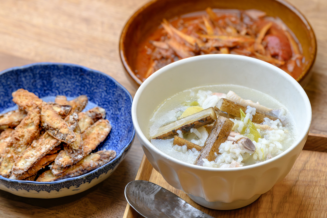 「中国では古くから漢方にも使用され、滋養強壮に役立つとされてきたごぼう。鶏手羽と合わせれば、うまみたっぷりで滋味深い参鶏湯風スープの完成です。ごぼうは大きめに切ることで、ホクホクとした食感に。しょうがとにんにく入りで、体もしっかり温まりますよ」
