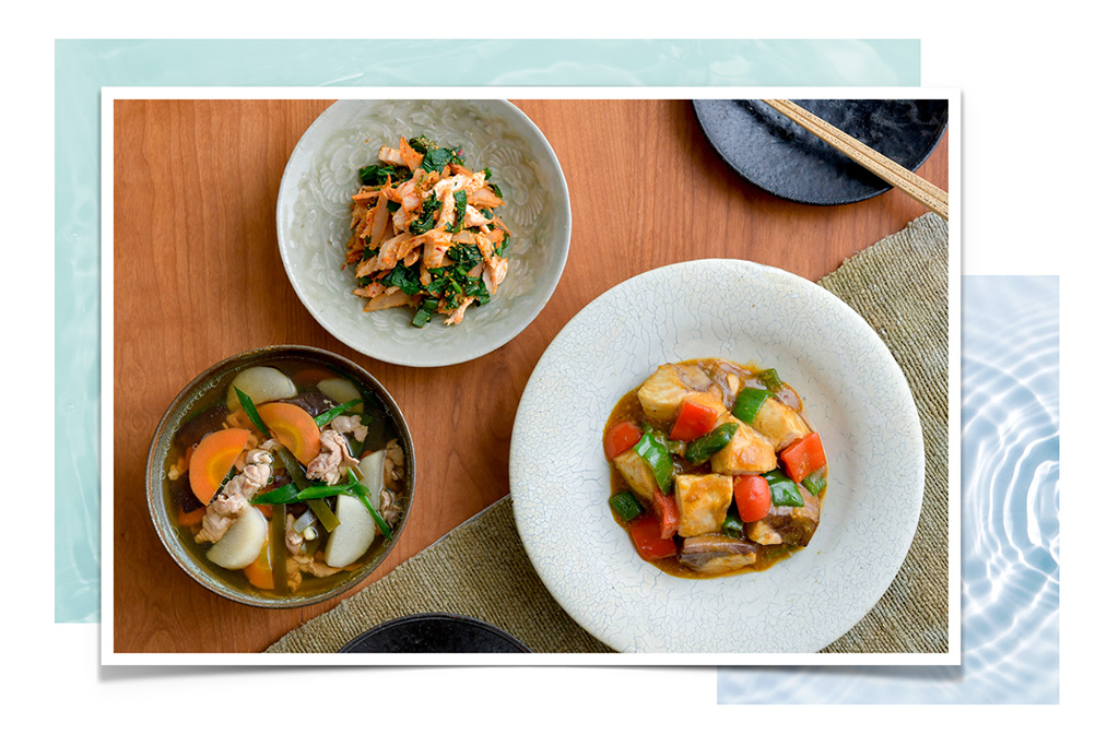 内側から肌をうるおし、肌のバリア機能を高めるには、まずは食生活を整えることが大切。美肌への近道は、自炊の機会を増やすことです。松見さんが教えてくださった簡単レシピを参考に、バランスの取れた食事から始めてみましょう。
