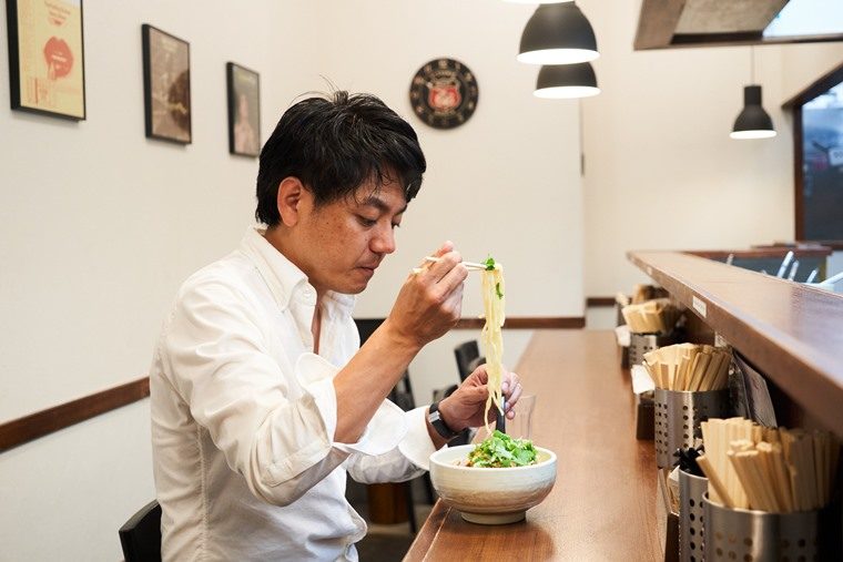 「店主の金子哲也さんは、もともと練馬の名店『濃菜麺(こいさいめん) 井の庄』で店長をしていた腕利き。井の庄自体が石神井公園を拠点とする実力派ラーメングループなんですが、僕は特に濃菜麺が好きで。フジロックに行く途中とか、関越(自動車道)に乗る前によく食べてたんです。金子さんとは顔見知り程度の間柄でしたけど、独立してからは一笑に行くようになって、仲が深まりましたね」(田中さん)