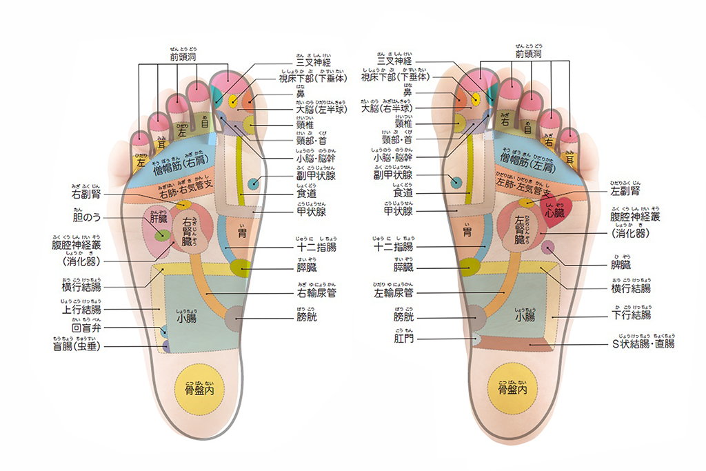 「ゾーンセラピーを行うときは、全身に血液をめぐらせている『心臓』のゾーンがある『左足』から行いましょう。これは東洋医学のエネルギーラインである経路の流れに合わせるため。