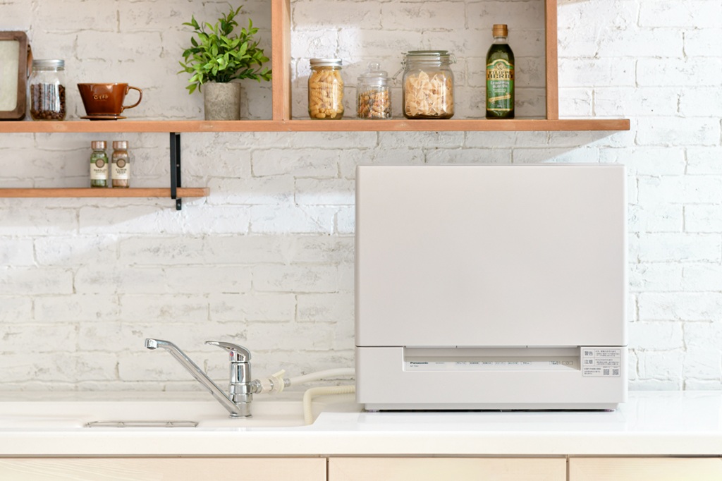 そこで今回は、パナソニックの食器洗い乾燥機NP-TSK2をお試しいただくことに。こちらは限られたスペースにも置ける奥行き約29㎝(*1)のスリムタイプながら、ふたり分の食器とフライパンなどの調理器具も一緒に洗えます(*2)。