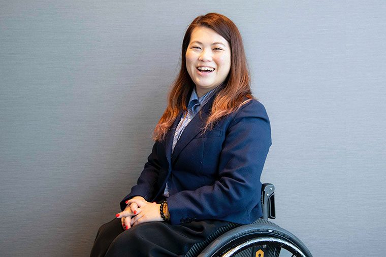 「私は生まれつき足が不自由でした。小学校から大学まで、いわゆる“普通の学校”に通っていましたが、移動手段が車いすなので、遠足でも先生と先に車で山頂に行くとか、体育の授業も受けられないとか、徒競走でもハンデがあるとか、なぜ私だけみんなと一緒のことができないんだろうと、周りから制限されることにモヤモヤしていました。あぁ、私は誰の役にも立てていないんだと、自信をなくすことの方が多い幼少期だったと思います」